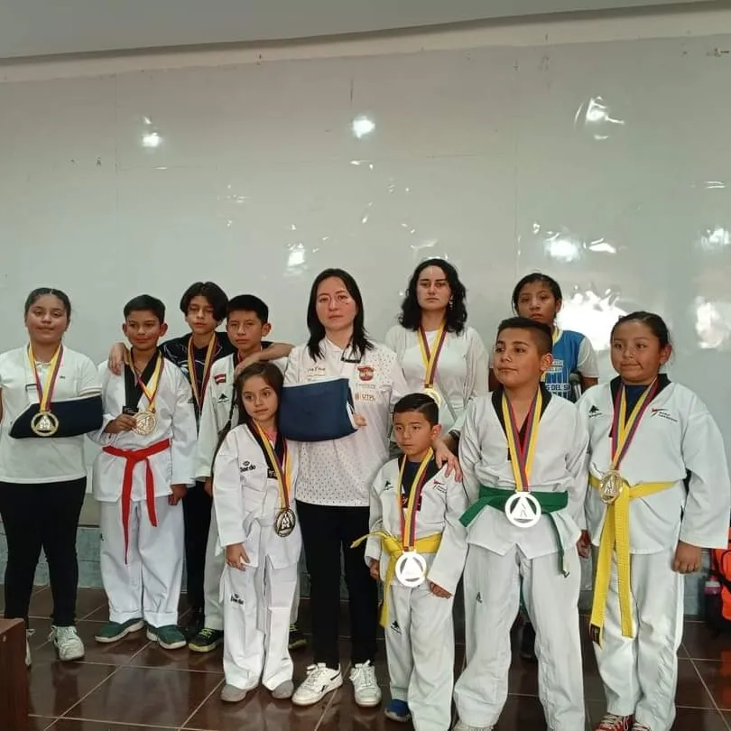 Portando globos blancos con mensajes como ‘Campeones hasta la eternidad’, los alumnos de Taekwondo recibieron a su entrenadora María de los Ángeles Santorum, quien aún se recupera del accidente ocurrido el viernes 12 de abril de 2024, en el límite provincial de Loja y Azuay, que cobró la vida de deportistas y padres de familia.